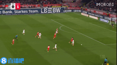 伤停补时8分钟。上半场比赛结束,拜仁1-0斯图加特。